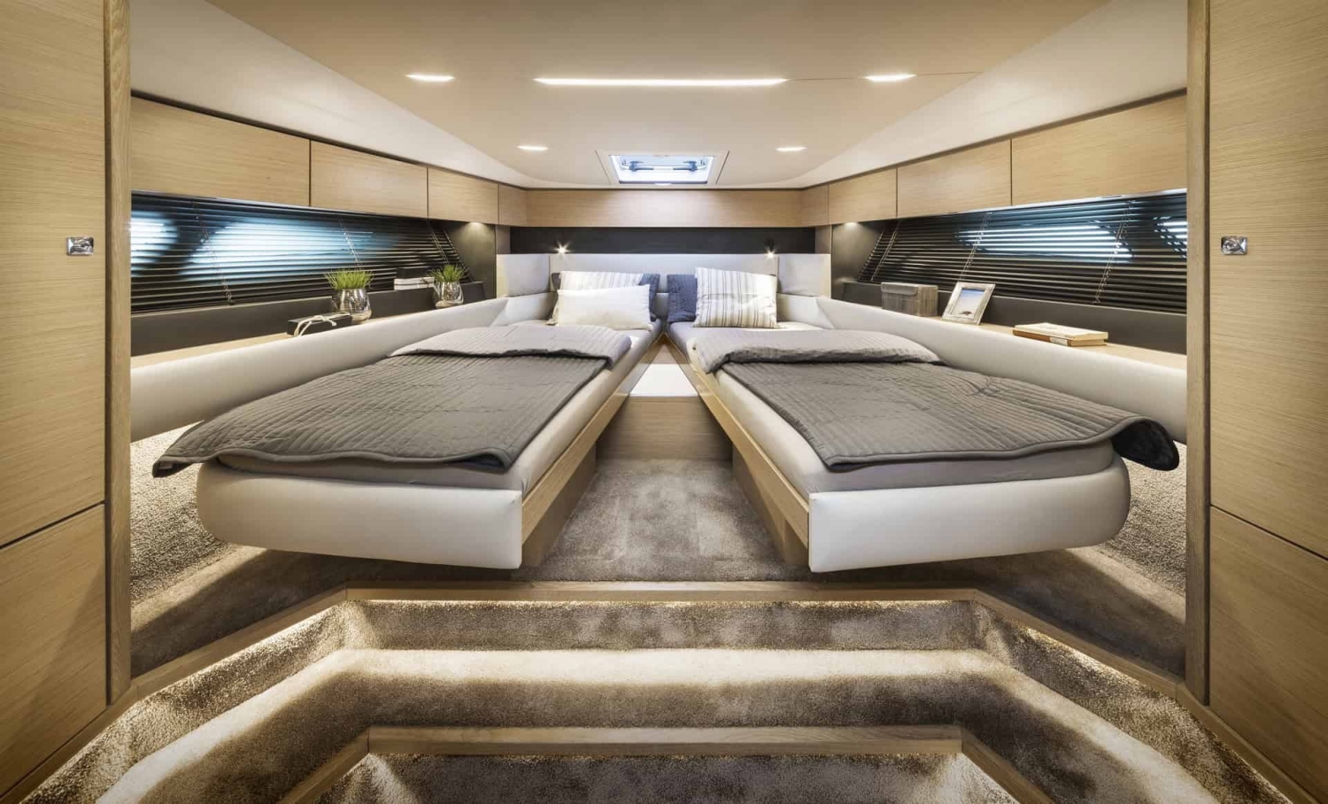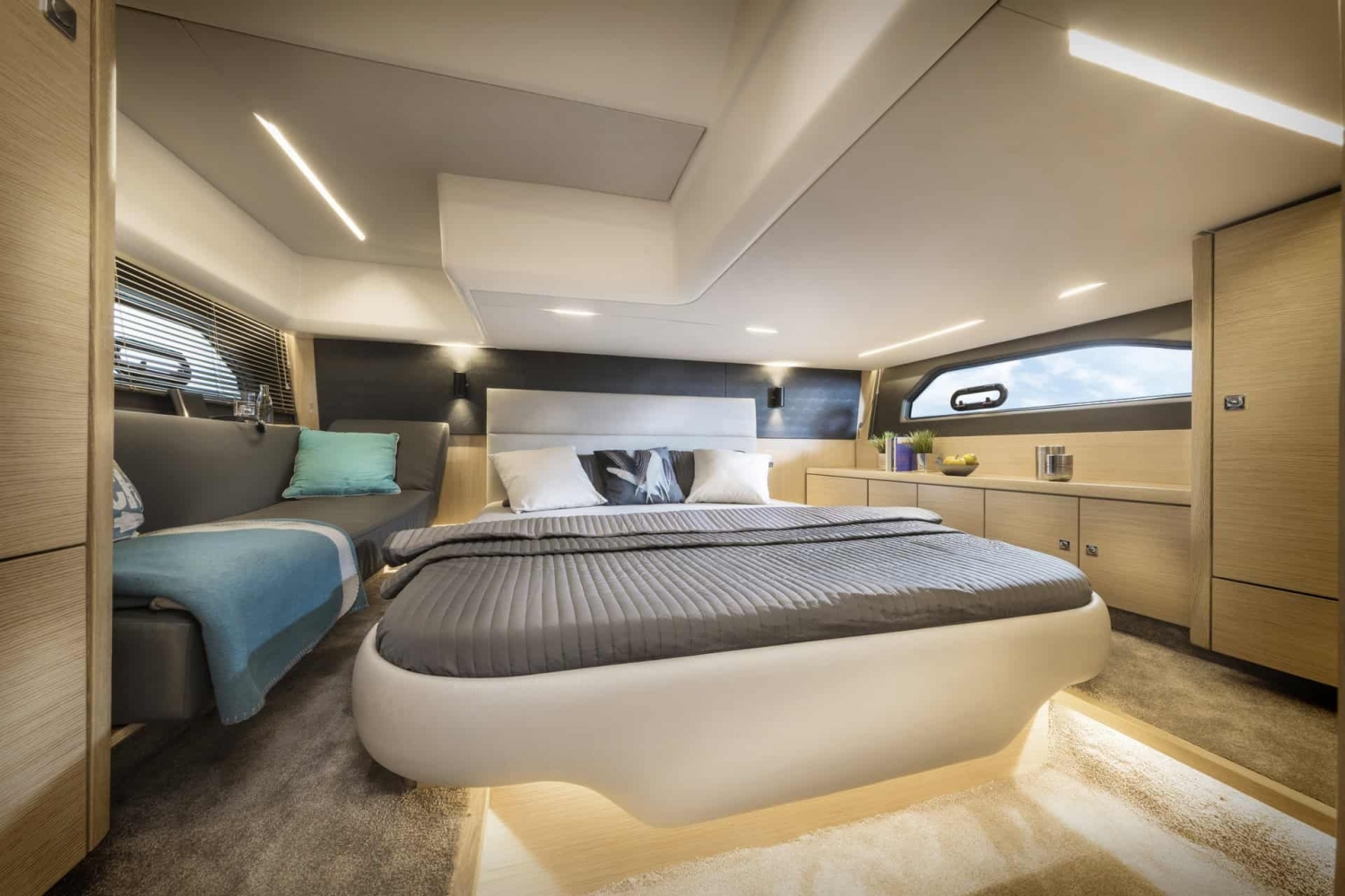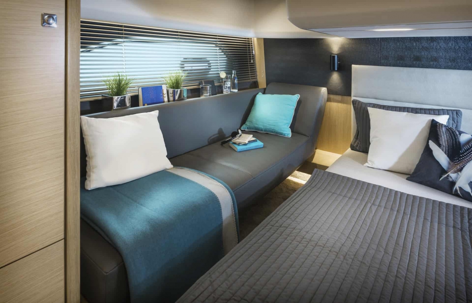Egal, wo Sie sich auf der BAVARIA R40 befinden, der Komfort begleitet Sie überallhin. Sei es auf dem riesigen Sonnendeck am Bug mit seinen bequemen Polstern und einem schattigen Rückzugsort unter dem Bimini Verdeck oder auf der hydraulisch absenkbaren Badeplattform, die sich ideal für Ihren Jetski oder Ihr Beiboot eignet. Halten Sie einfach einen Moment inne und genießen Sie es, an Bord dieser luxuriösen Yacht zu sein. Sie werden sie nie wieder verlassen wollen.