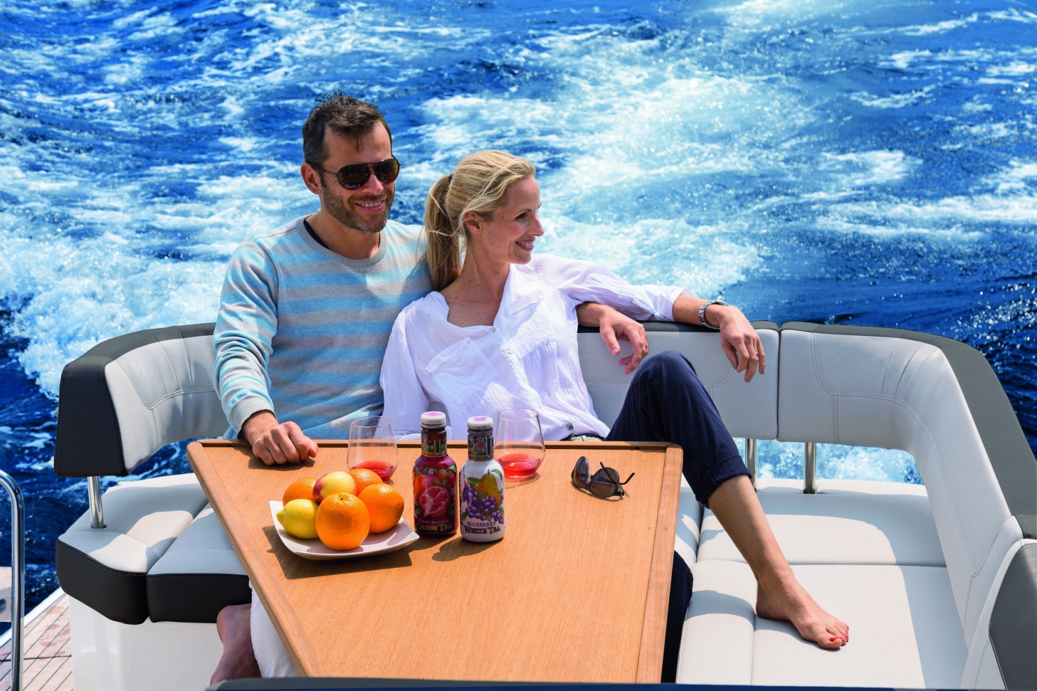 Das Leitmotiv der BAVARIA S-Yachten lautet: Mehr Freiheit durch mehr Optionen. Eine großartige Option der BAVARIA S33 ist es, den Cockpittisch abzusenken und ihn in einen großen Liegebereich für Familie und Freunde zu verwandeln, auf dem man sich an sonnigen Tagen entspannen kann. Praktischerweise befindet er sich auch in der Nähe der großen Badeplattform.