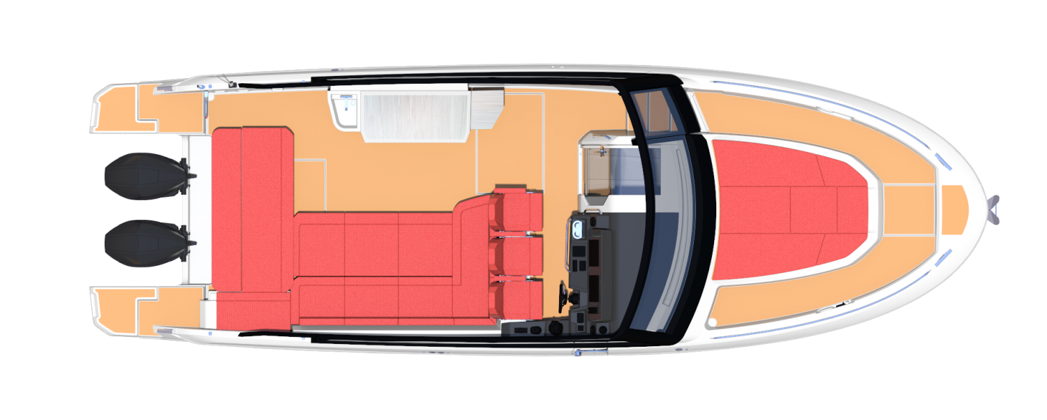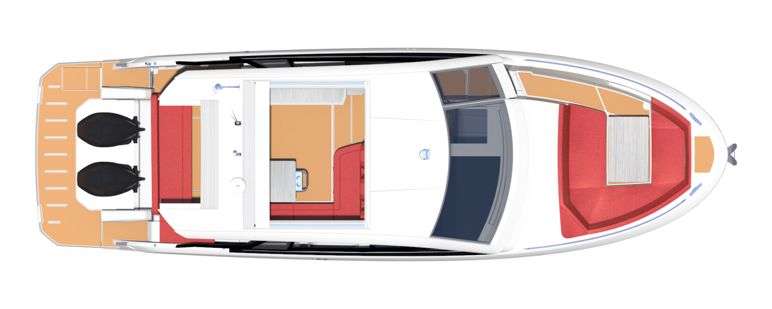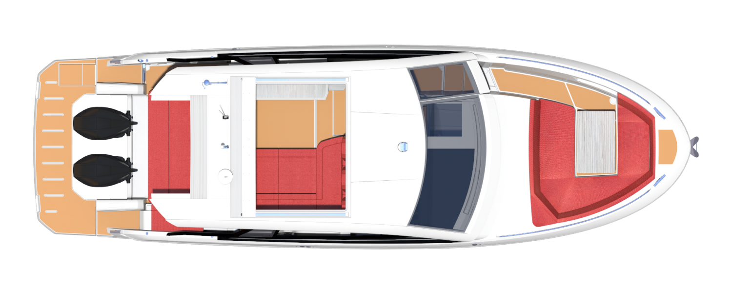 Das Hardtop bietet Schutz und Licht zugleich. Das große Softtop über dem Steuerstand sorgt für eine sanfte Brise im Cockpit. Das kleinere Softtop über dem Heck lässt sich öffnen, um noch mehr Sonne hereinzulassen. Für ausgiebiges Badevergnügen ist eine optional hydraulisch absenkbare Badeplattform erhältlich.