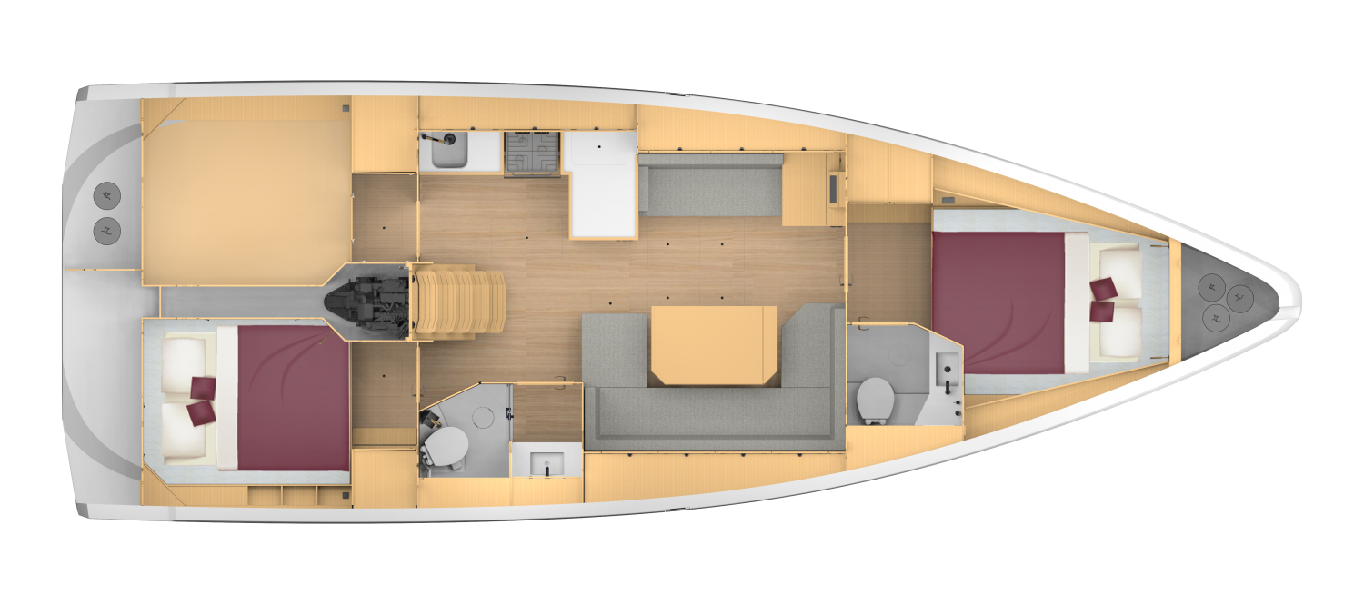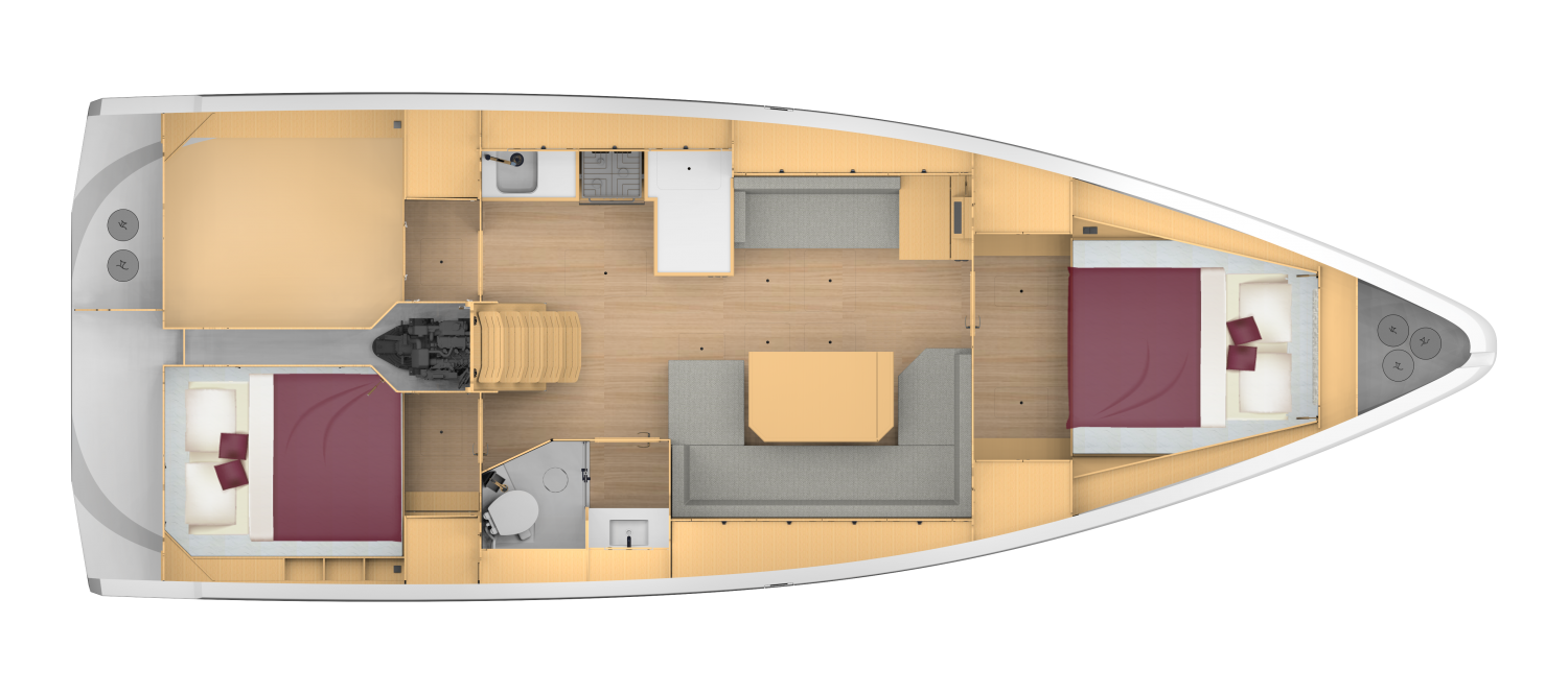 Die BAVARIA C42 ist die logische Weiterentwicklung der BAVARIA C-Serie, hat aber dennoch ihren ganz eigenen Charakter. Eine moderne, innovative Rumpfform mit Kimmkanten und einem V-förmigen Bug bieten Ihnen nicht nur beste Segeleigenschaften, sondern auch ein großzügiges Layout unter Deck.
