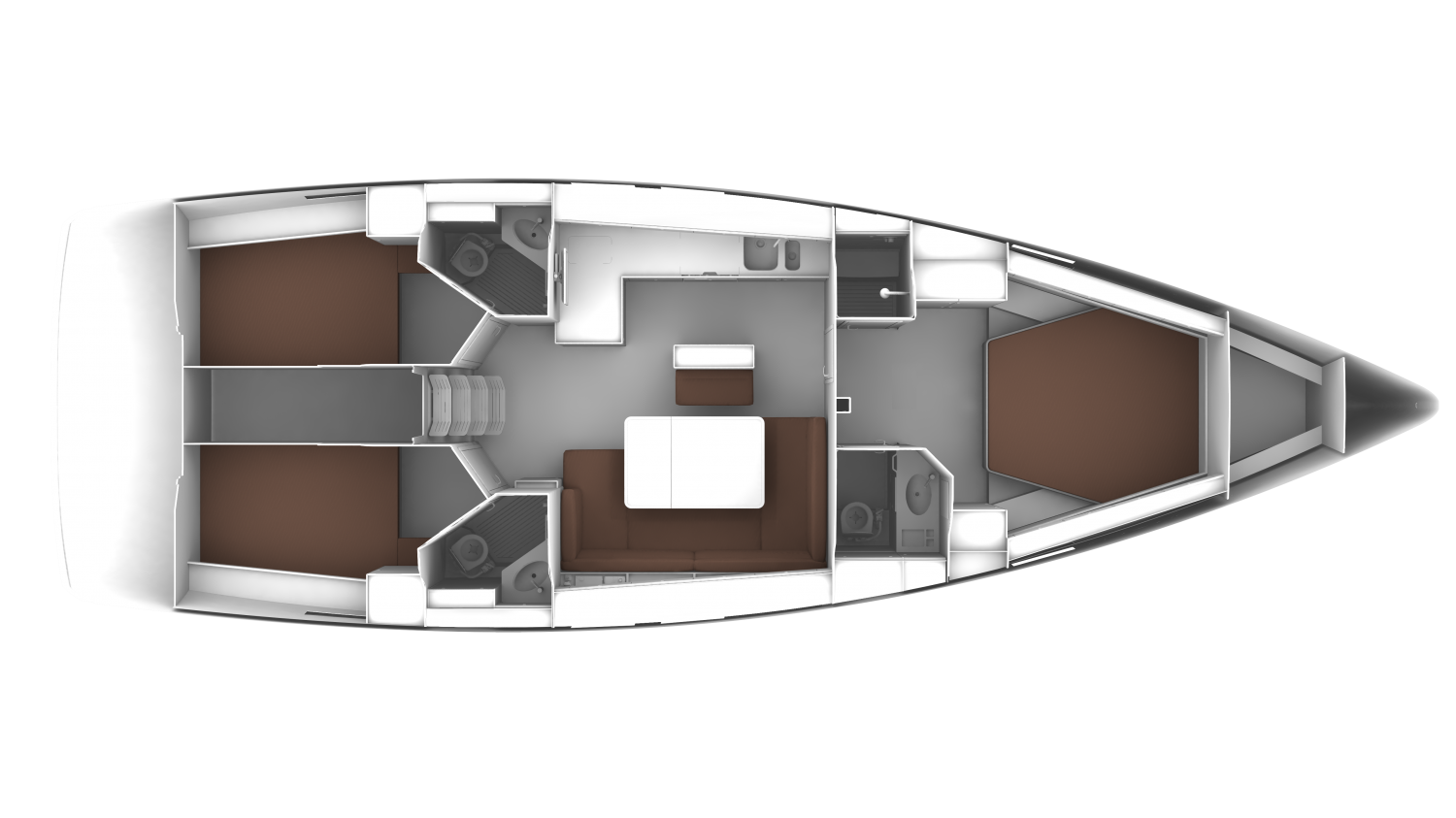 „Suite“ beschreibt den Komfort der Eignerkabine am besten. Ein Kingsize-Bett, gemütliche Beleuchtung und die Auswahl an Hölzern strahlen puren Luxus aus. Ein eigenes Badezimmer und eine separate Dusche sind selbstverständlich. Dies ist Ihr privater Bereich, der Luxus ausstrahlt.