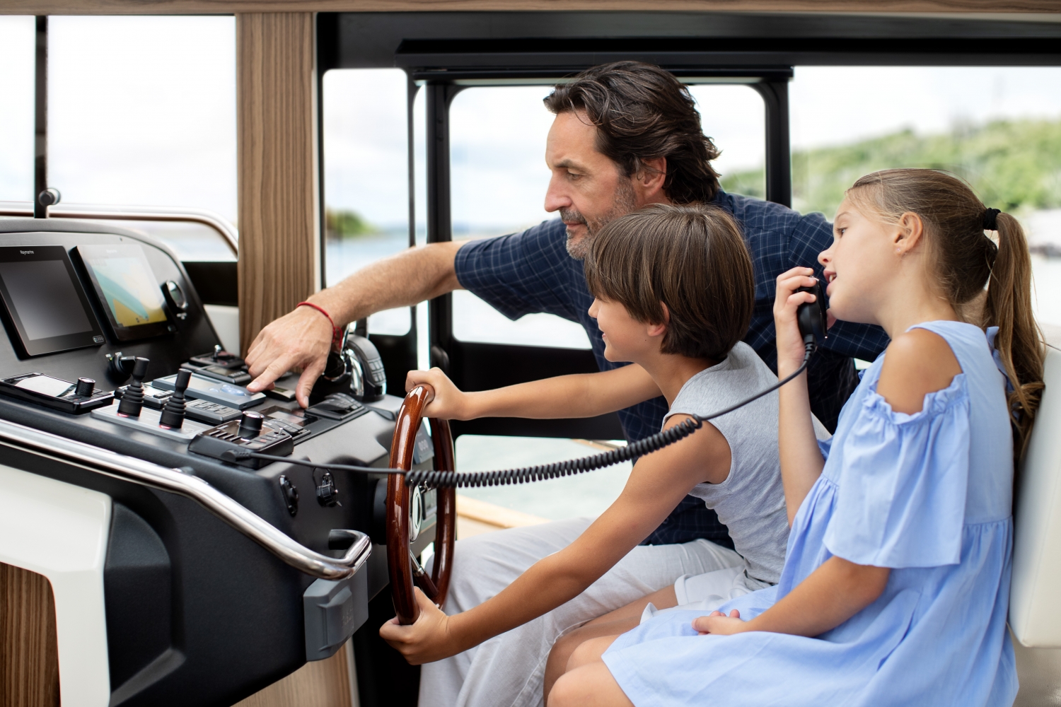 The Greenline 40 has three different entry height levels (stern platform, side exit, bow), allowing you to safely board and disembark your yacht at all times.