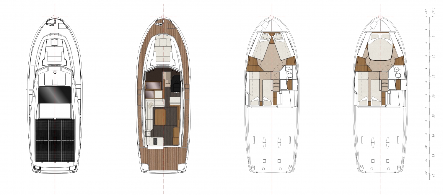 Greenline 40 redefines boating. The level of wellbeing at anchor or at sea has been brought to a new dimension. The comfort of moving around with ease, excellent visibility, ambient light and optimal ventilation in all areas are well above expectations.