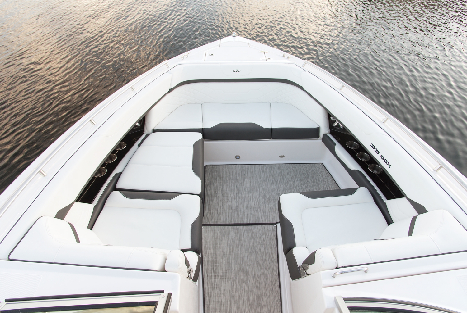 The waters are waiting to be explored. Explore them without limits with the Regal 33 OBX. Equipped for exhilarating adventure and premium entertainment, there is nothing this versatile luxury outboard can’t do. Live large with the expansive cockpit refreshment center and stay a bit longer in the comfortable berth accompanied by a well equipped head. Expect more out of boating with the 33 OBX.
