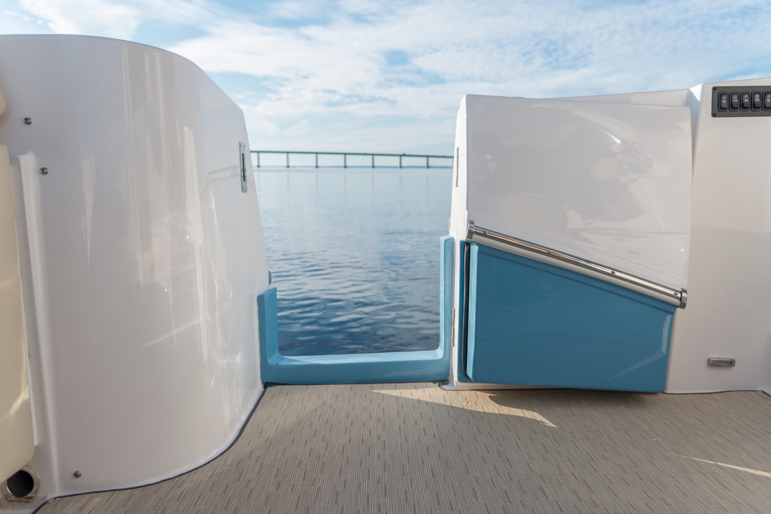 Wenn Sie gerne angeln, können Sie das optionale Angelpaket mit einem Fischkasten, einer Fischkühlbox, Heckrutenhaltern und einer Süßwasser-Spülvorrichtung hinzufügen.