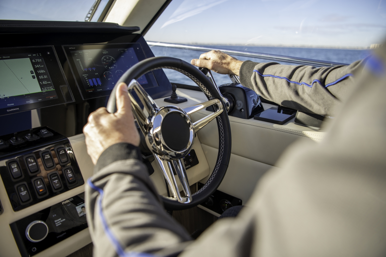 Alle Bedienelemente, die Sie am unteren Steuerstand finden, stehen Ihnen auch auf der Flybridge zur Verfügung.