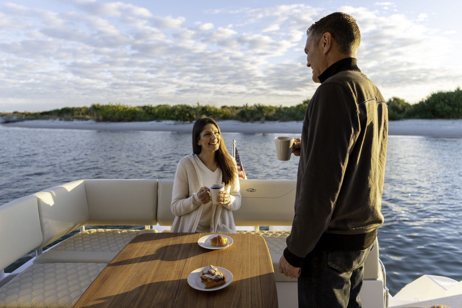 Die Regal 38 XO schließt die Lücke zwischen einer Sportyacht und einem Außenbord-Bowrider und schafft damit eine Klasse für sich. Dieses Modell vereint Luxus, Innovation und die Flexibilität eines Außenbordmotors und bietet Ihnen die Freiheit, mit Ihrer Familie alle möglichen Abenteuer zu erleben.