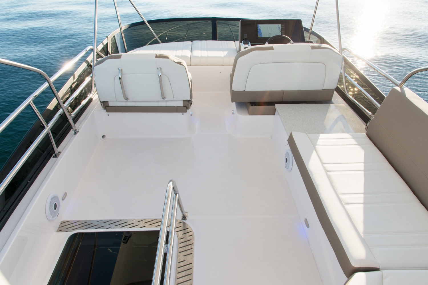 Mit ihrer großzügigen Flybridge, dem luxuriösen Open-Air-Atrium und den innovativsten Funktionen aus mehr als 50 Jahren Bootsbau-Exzellenz ist die 42 Fly wirklich einzigartig. Ob Sie unbekannte Gewässer erkunden, den Sonnenuntergang aus einer neuen Perspektive genießen oder einen unvergesslichen Wochenendausflug mit Ihren Lieben unternehmen möchten – die 42 Fly macht all das mit Stil möglich.