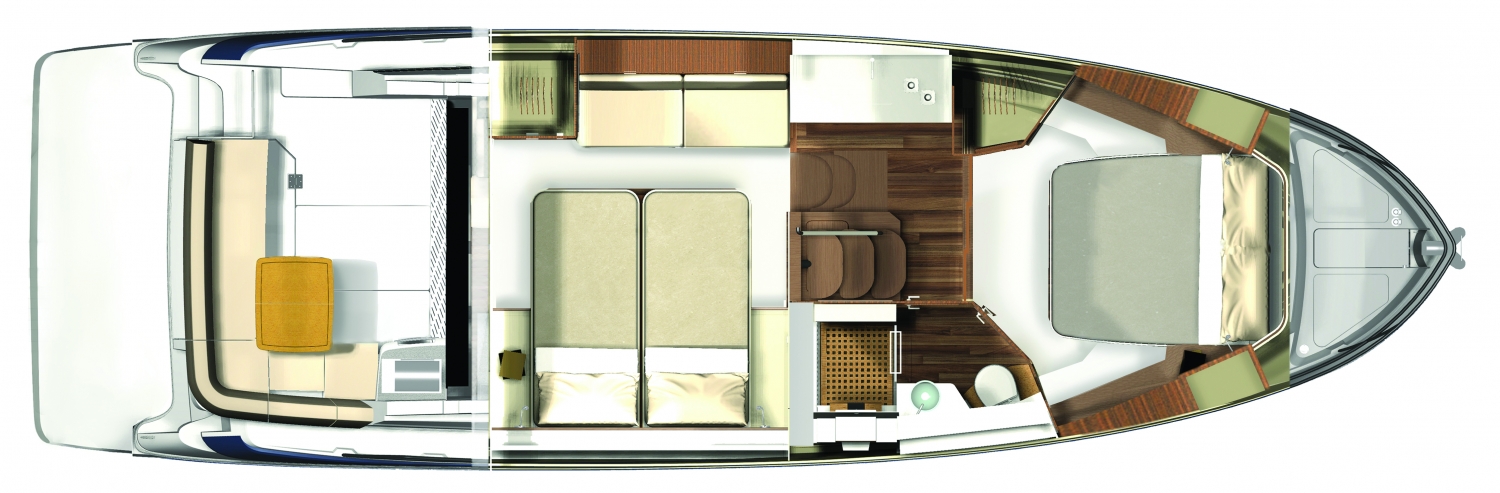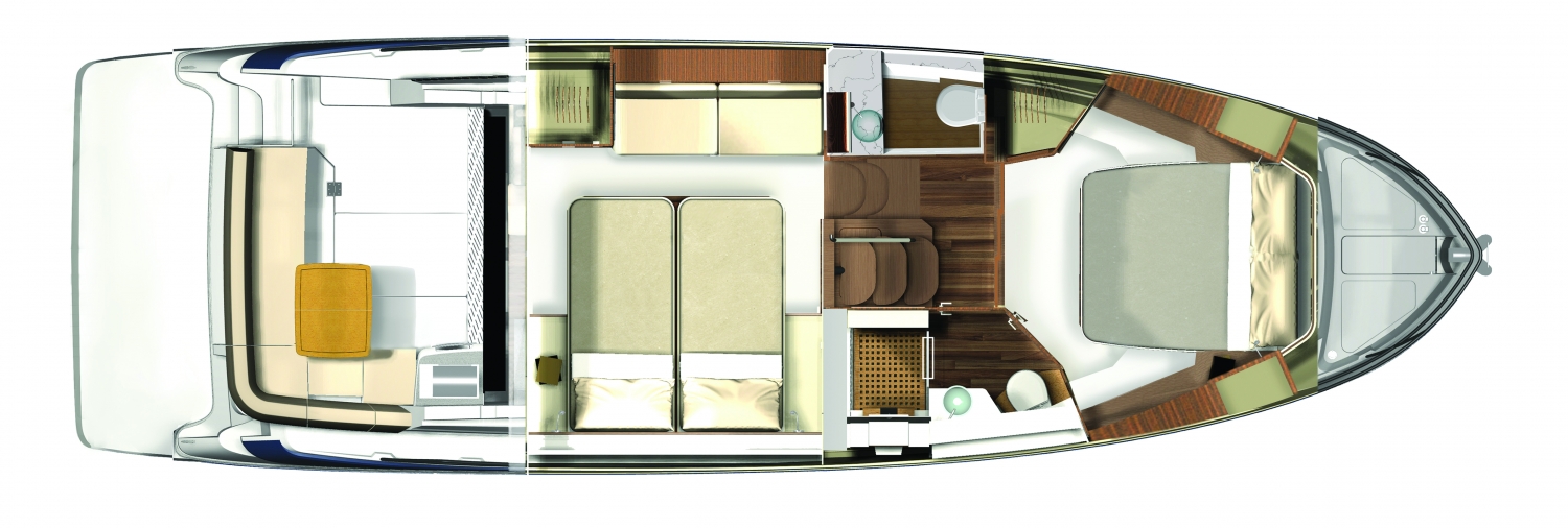 Lehnen Sie sich zurück, genießen Sie die Sonne oder setzen Sie sich aufrecht hin und beobachten Sie das Wasser auf der mehrfach verstellbaren Sonnenliege auf dem Vordeck. Die optionale Cabana ist ideal, wenn Sie die Aussicht lieben, aber etwas Schatten wünschen.
