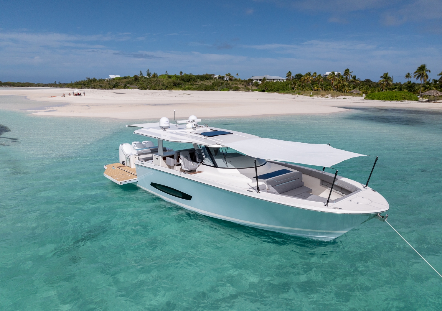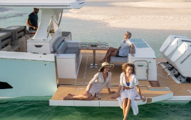 Mit einem Knopfdruck oder einem Fingertipp auf Ihrem Display lassen sich die Terrassentüren mühelos herunterklappen, sodass Sie näher am Wasser sitzen und sofort mehr Platz für geselliges Beisammensein haben.