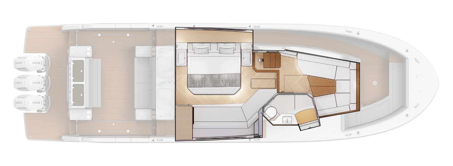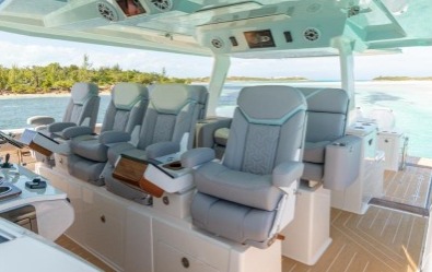 Die vielseitigen Kapitänssitze sind von beiden Seiten zugänglich und bieten bequem Platz für vier Personen am Steuerstand. Sie verfügen über hochklappbare Polster und Armlehnen und lassen sich für noch mehr Vielseitigkeit sogar umklappen und drehen.